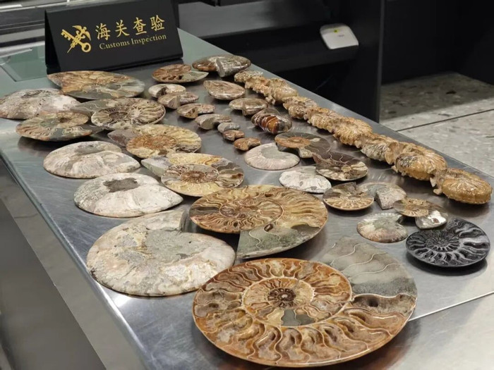 西九龙站海关关员在对出境旅客进行监管时,发现1名进入海关监管区且未向海关申报的外籍旅客,行李箱机检图像异常。海关关员经开箱查验,发现箱内物品均使用塑料气泡膜分隔包装,关员逐一拆开气泡膜发现大量疑似文物的金属钱币、纸质钱币,还有大量疑似化石的贝壳形状物品。后经广东省文物鉴定站鉴定,当事人携带的金属钱币为中国古代钱币、中华民国铜币、香港一毫银币、外国古代钱币574枚,属于禁止出境的一般文物;纸质钱币为中华民国纸币106张,属于限制出境文物。后经广东省自然资源厅鉴定,当事人携带的贝壳形状物品为菊石化石40件、鹦鹉螺化石2件,均属一般保护古生物化石。