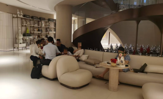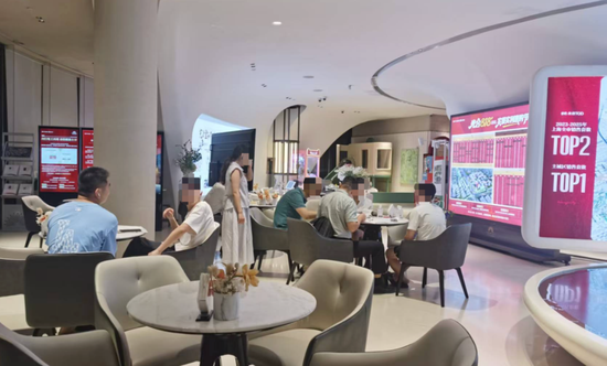 尽管是工作日的晚上,记者在售楼处仍看到不少前来看房的人们,既有年轻夫妇组合,也有带着老人小孩的“全家总动员”组合,还有一个人来看房的。他们有的坐在售楼处的沙发上、桌子旁边,有的站在沙盘、蓝图前面,耐心听置业顾问、中介讲解。